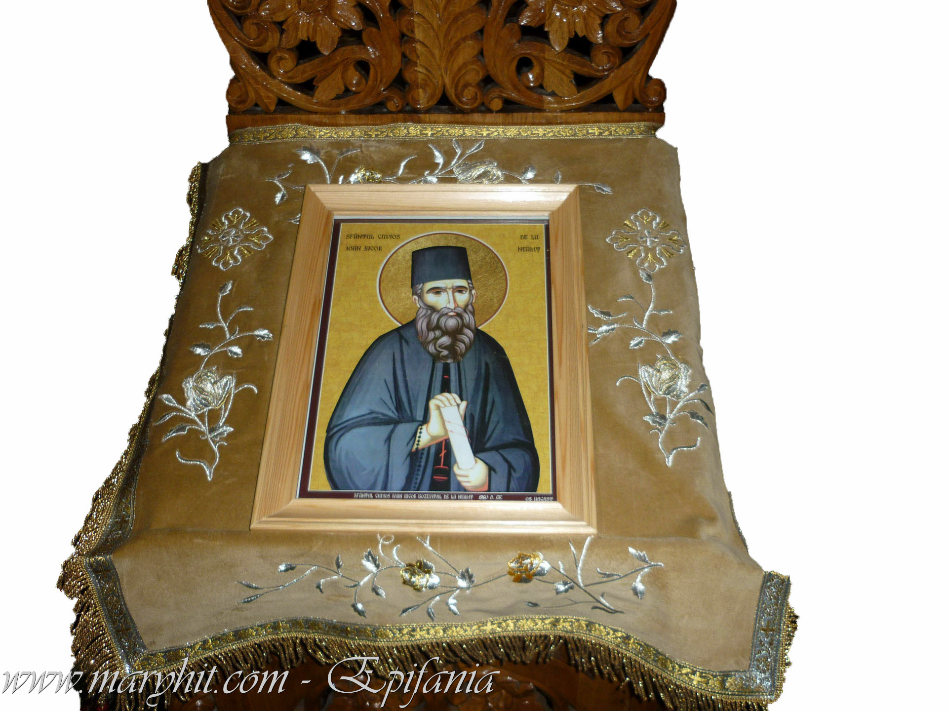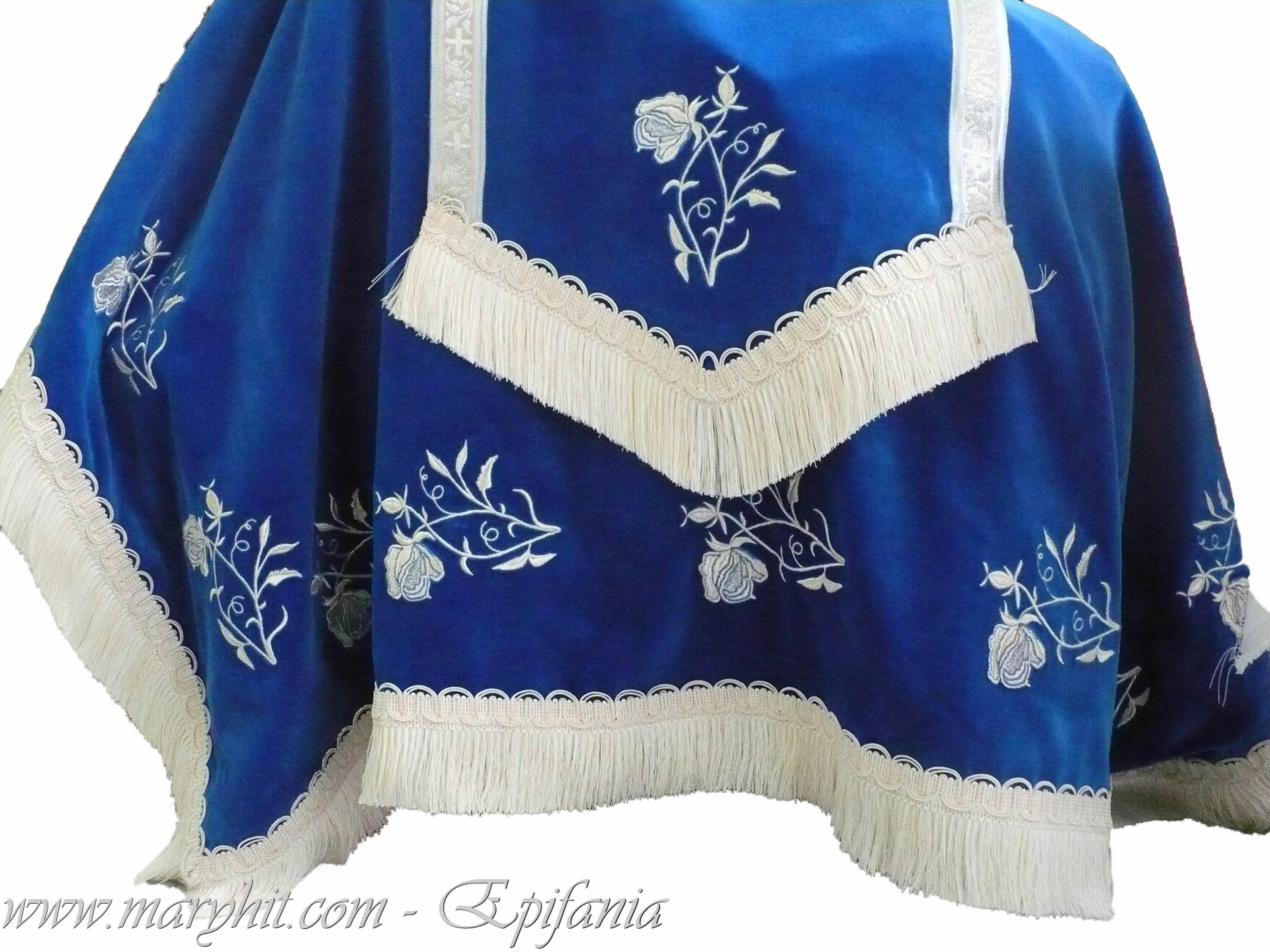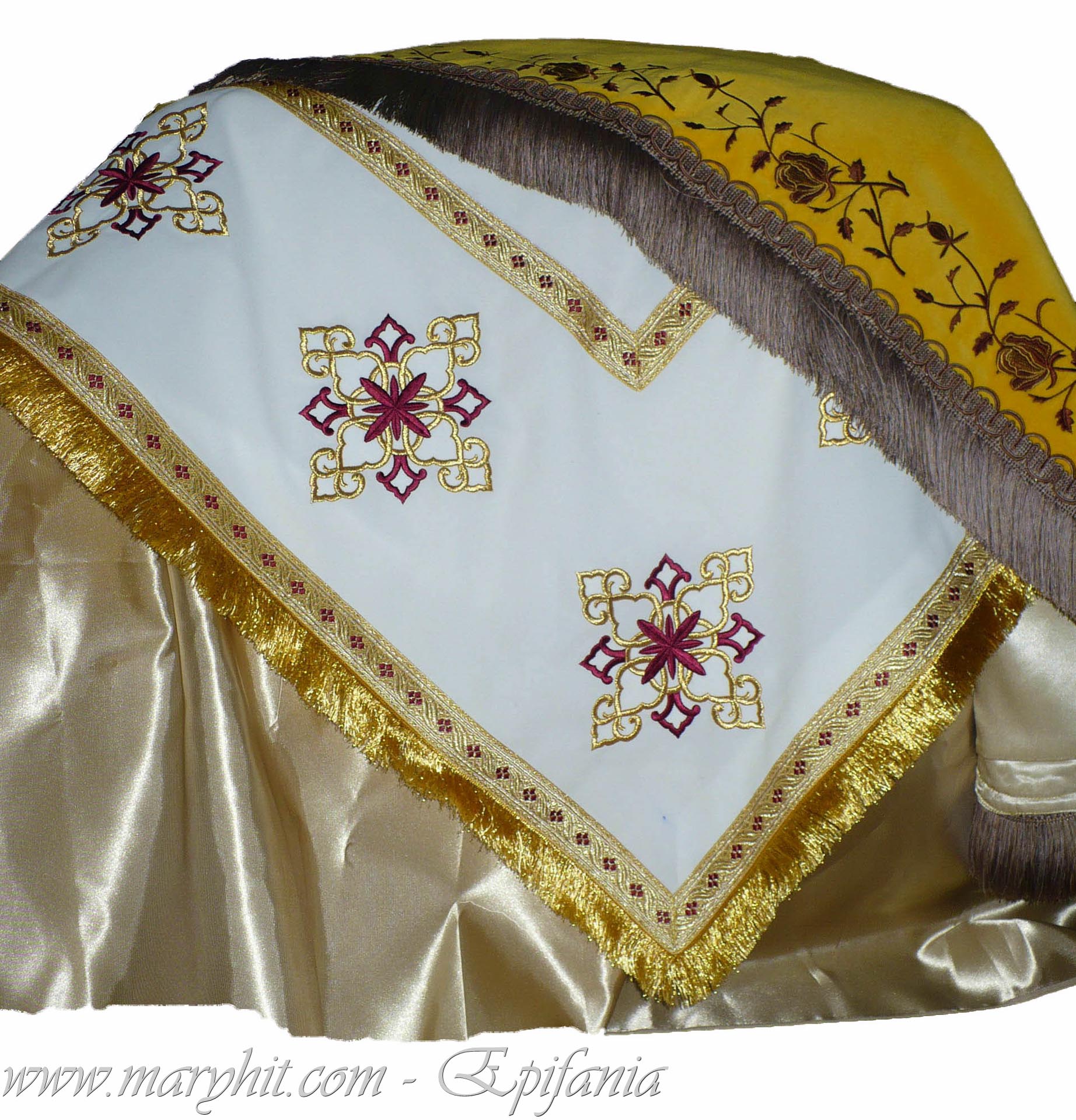 IB029 - Servet din catifea alba brodat cu icoana Maicii Domnului si tropar.