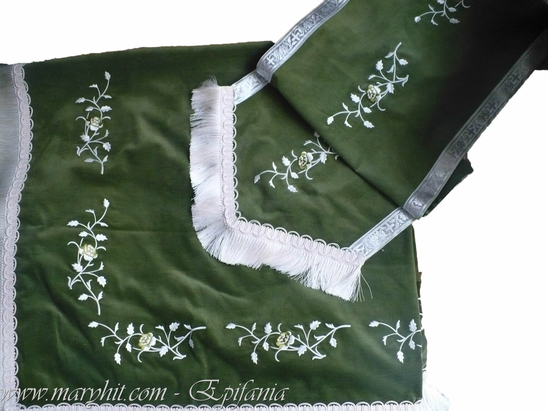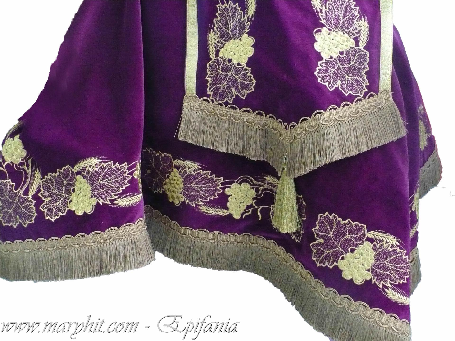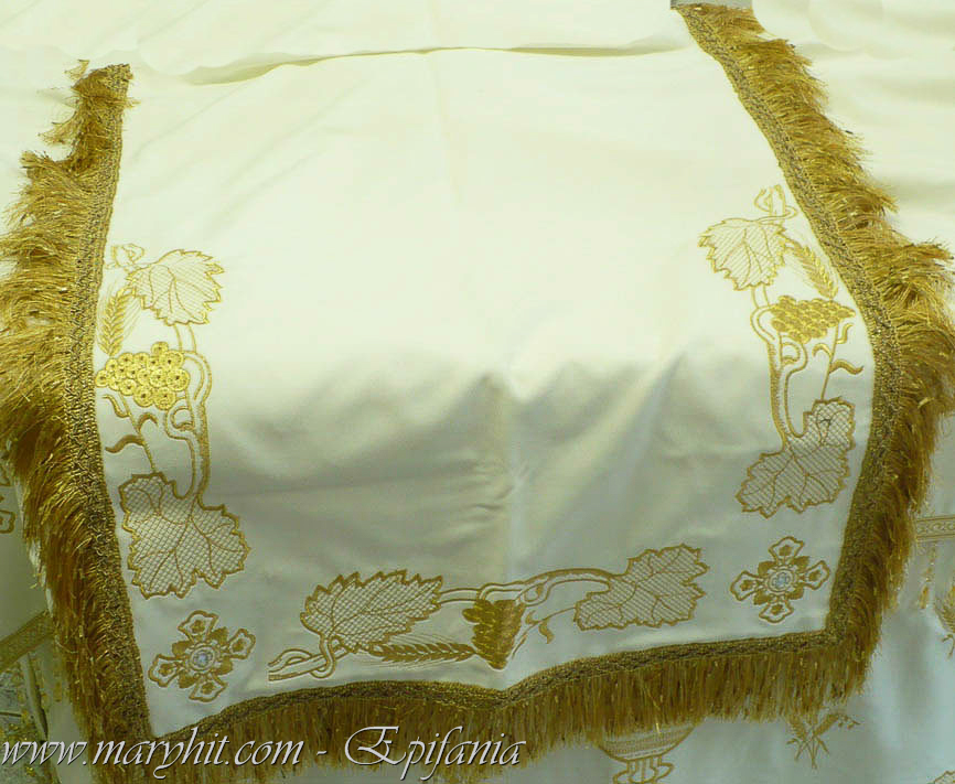 IB003 - Imbracaminte Biserica din catifea alba brodata cu model struguri.