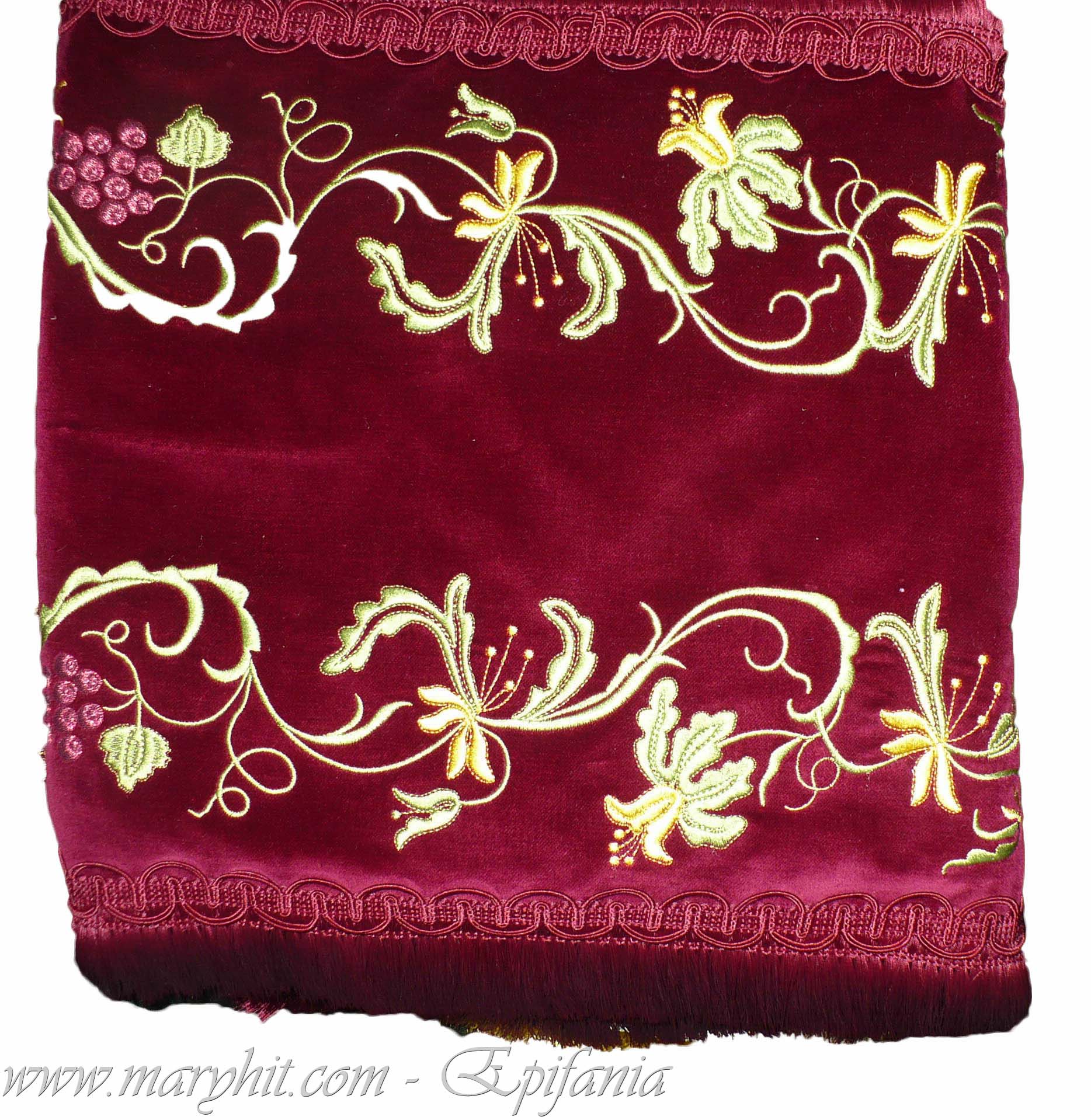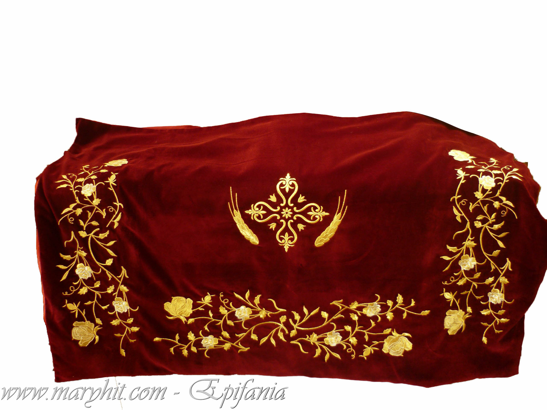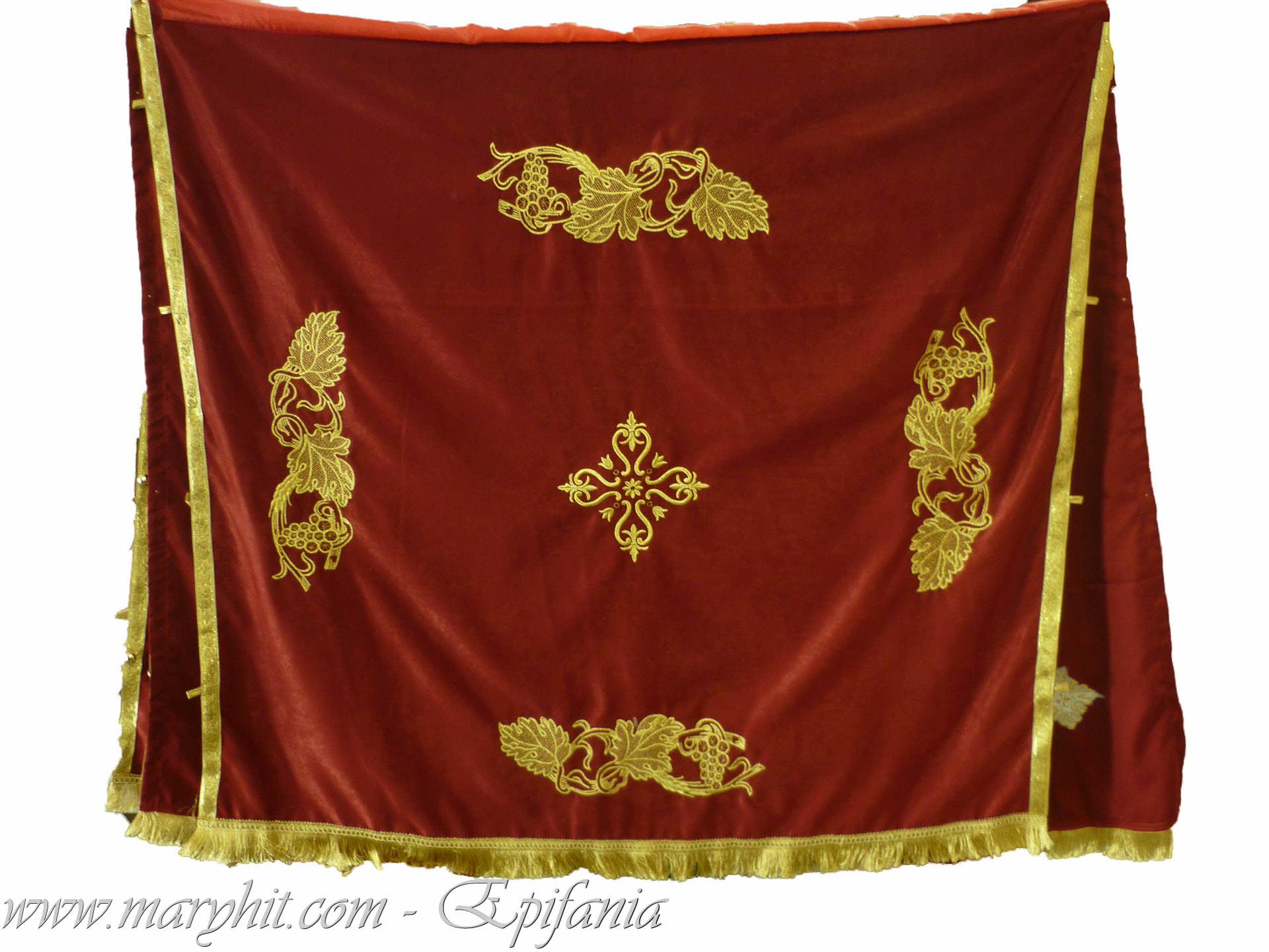 IB005 - Fata de masa pentru Sf Altar din catifea grena cu broderie fir auriu model trandafiri.