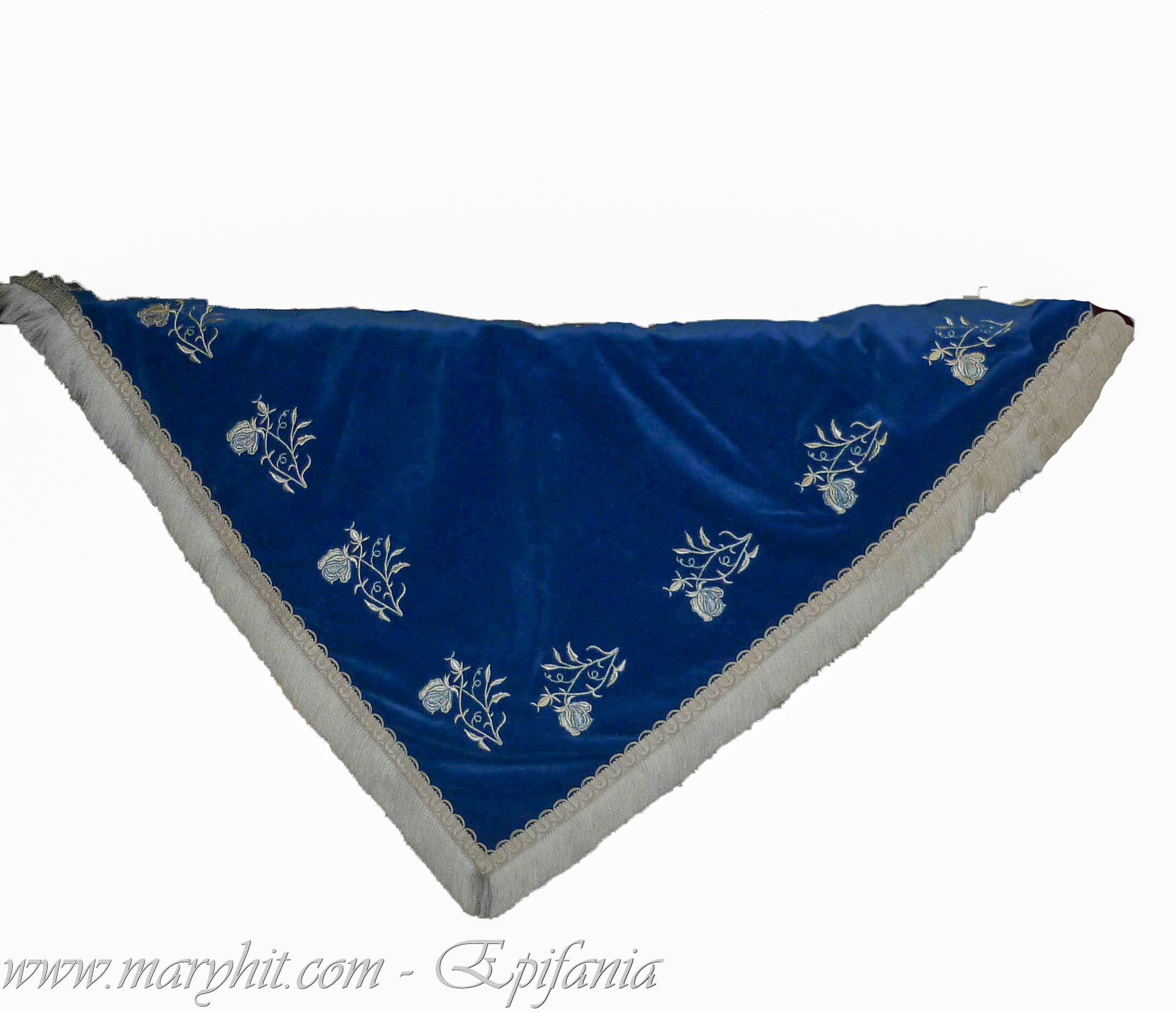 IB031 - Servet din catifea albastra cu broderie fir argintie, model trandafiri.