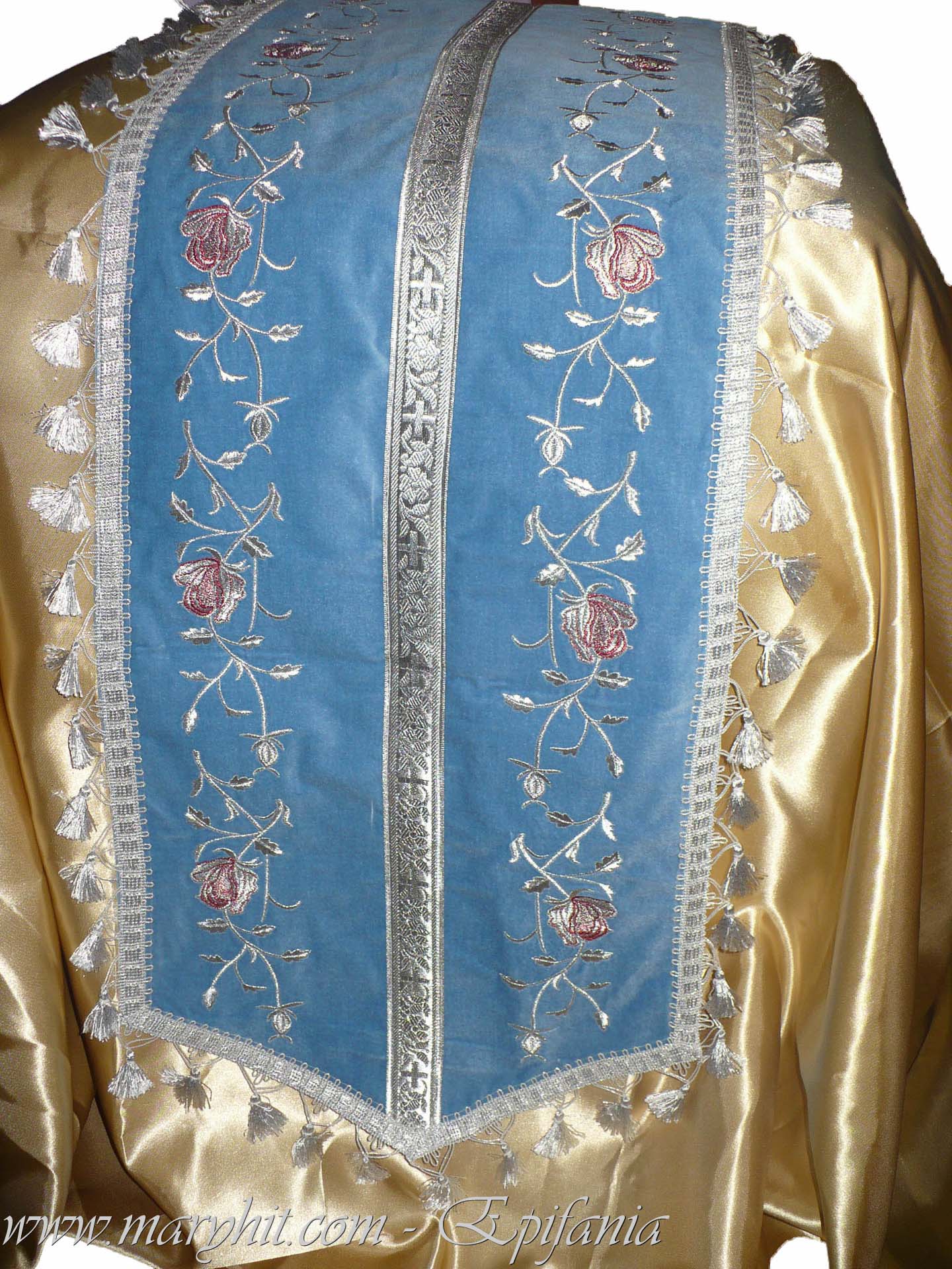 IB014 - Model imbracaminte Biserica din brocard si cruci brodate.