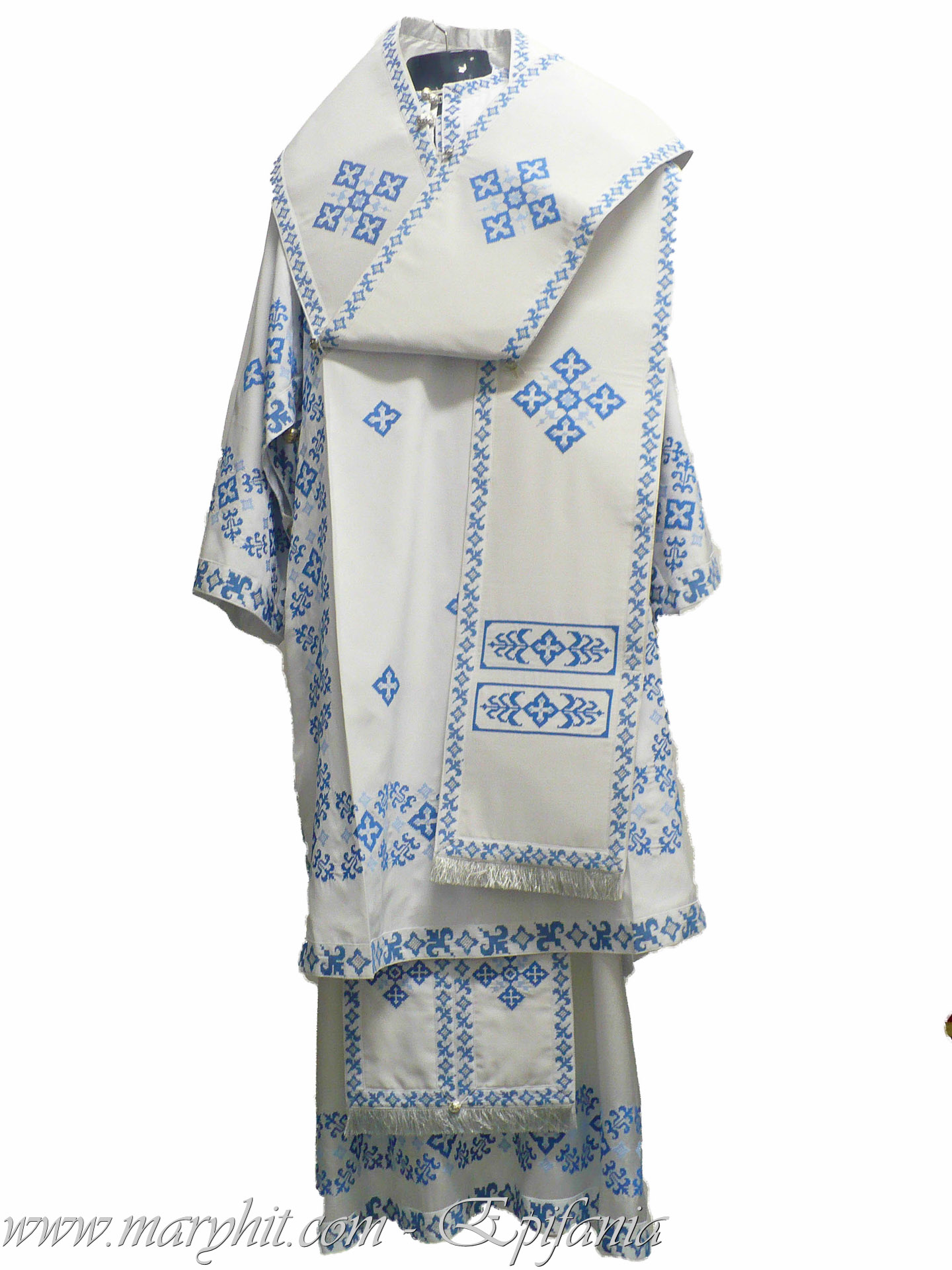 VA001 - Vesmant Arhieresc din in si matase cruci albastre tesute.