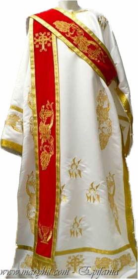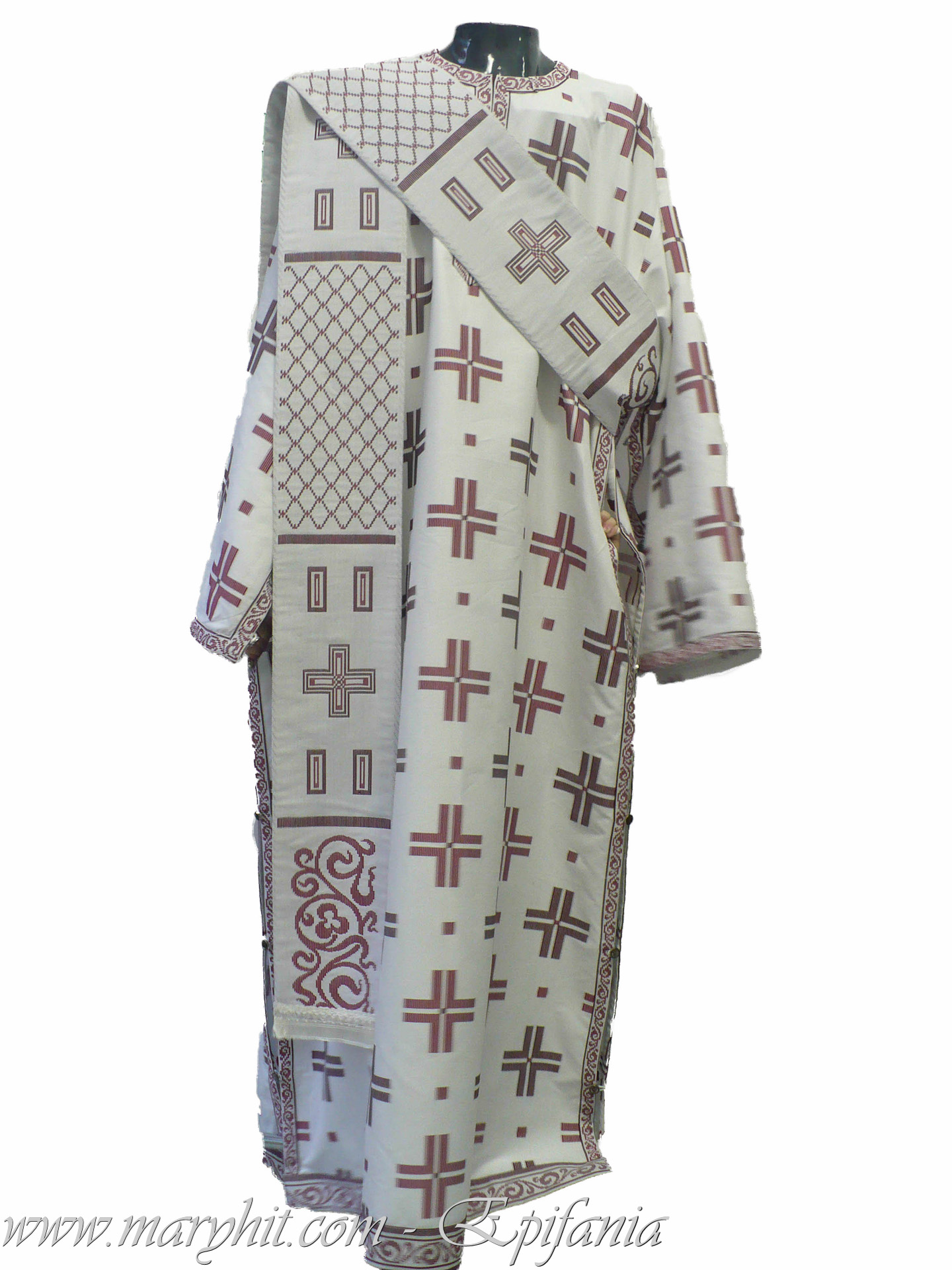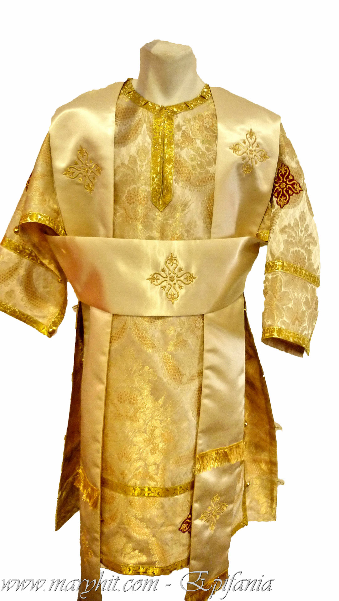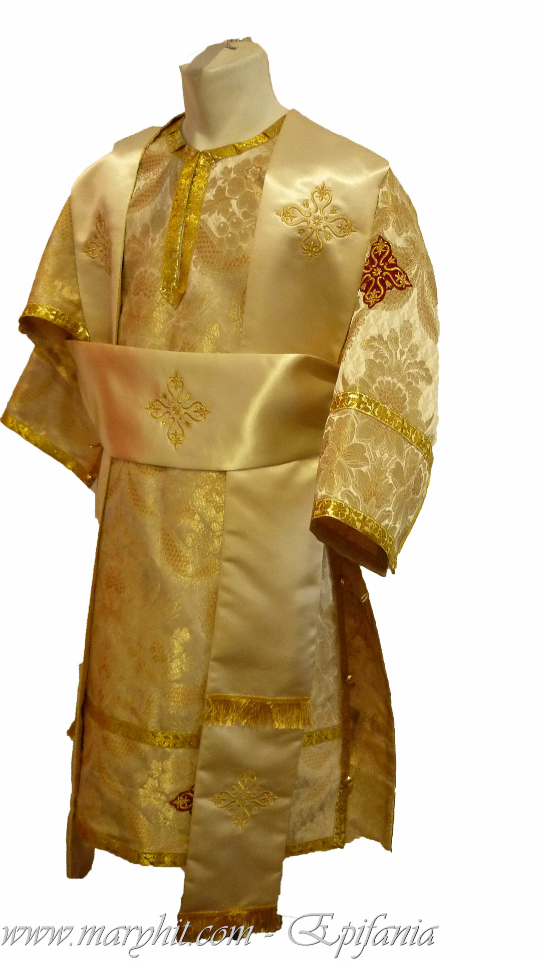 VD002 - Vesmant Diaconesc din in si matase Grecia, cruci grena tesute.